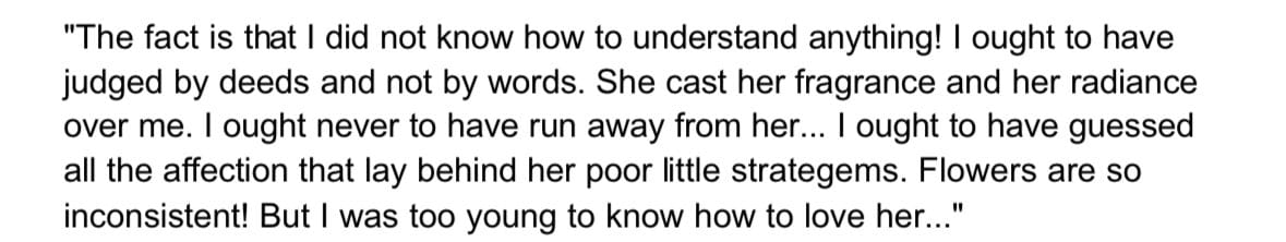 - The part that hit me the most wasn't the flower, or the boy's "suicide." It was actually the fox. It made me realize what it meant to have the opportunity to change someone's life, and make such a big impact on them. It was really beautiful.